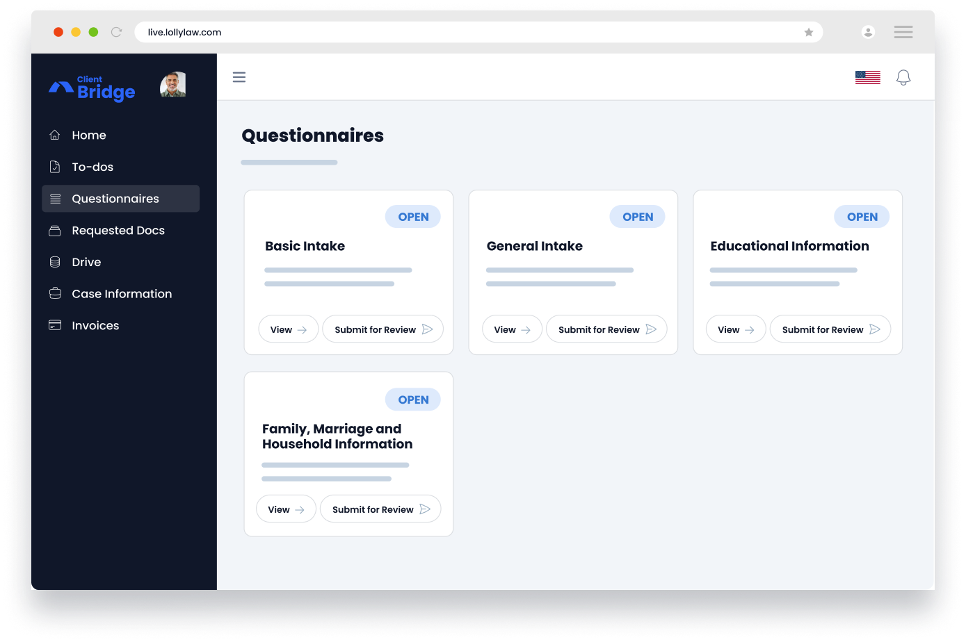 LollyLaw offers attorneys the most comprehensive intake questionnaire database, translatable to more than 20 languages —allowing staff to overcome common language barriers. Law firms can also customize questionnaires based on each case type’s needs and requirements to avoid clients entering information that are not relevant to their cases