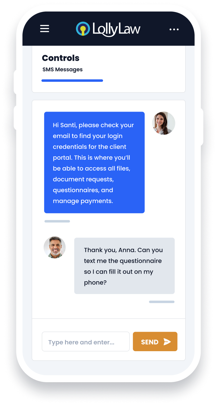 Log in to LollyLaw and collaborate with your clients in real time in the cloud. Fill out forms together, set up automated notifications, and communicate via a special SMS text number. Streamline the immigration process and save your firm the trouble of playing catch-up and phone tag.
